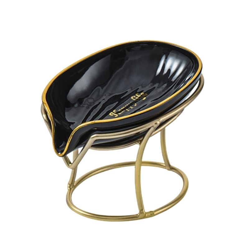 Verrijk je badkamer of keuken met ons prachtige Gouden zeepschaaltje in bladvorm. Dit zeepschaaltje combineert functionaliteit met een luxe uitstraling, perfect voor wie houdt van stijl en verfijning. Het zwarte keramische schaaltje, met zijn sierlijke gouden rand en bladvormige design, rust elegant op een stevige gouden metalen standaard. Dit design is niet alleen een lust voor het oog, maar zorgt er ook voor dat je zeep goed kan uitlekken, waardoor deze langer meegaat. Stel je voor hoe dit zeepschaaltje een vleugje glamour toevoegt aan je dagelijkse routine, of het nu op de wastafel staat of als decoratief element dient.