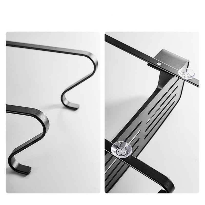 Dit hangende RVS doucherek biedt twee ruime niveaus, perfect voor al je douchebenodigdheden, van shampoo en conditioner tot douchegel en scrubs. De open constructie zorgt ervoor dat water moeiteloos wegloopt, wat de hygiëne bevordert en de levensduur van je producten verlengt. Daarnaast is het rek voorzien van handige haakjes aan de onderzijde, ideaal voor het ophangen van sponzen, washandjes of zelfs een scheermesje. Met dit doucherek is alles binnen handbereik, waardoor je doucheroutine efficiënter en aangenamer wordt. Het strakke zwarte design past naadloos in elke moderne badkamer.