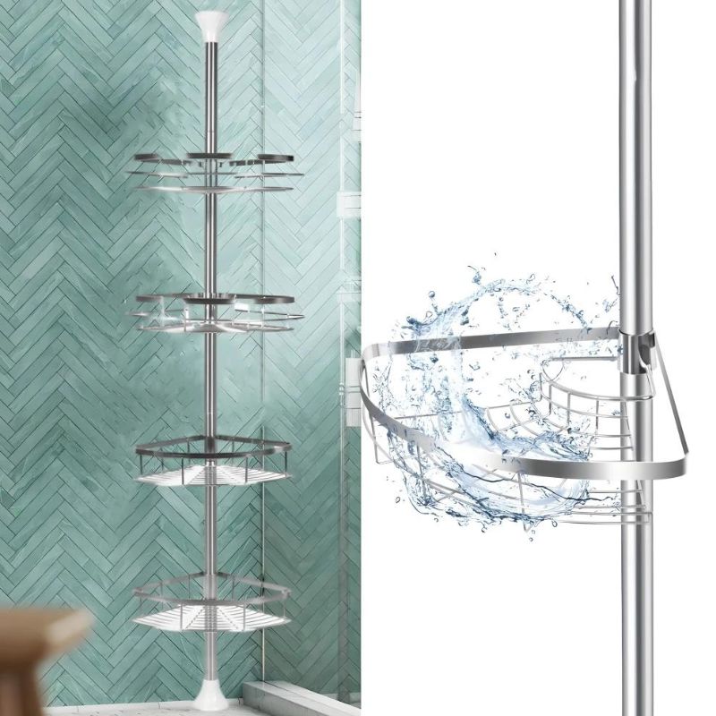 Transformeer je badkamer in een oase van orde en rust met ons innovatieve telescopisch RVS hoek doucherek. Geen rondslingerende shampoos en douchegels meer! Dit stijlvolle en praktische rek is ontworpen om optimaal gebruik te maken van de hoekruimte in je douche, waardoor je al je douchebenodigdheden binnen handbereik hebt. Het hoogwaardige RVS (roestvrij staal) zorgt niet alleen voor een moderne uitstraling, maar garandeert ook duurzaamheid en weerstand tegen roest, zelfs in de vochtige omgeving van de badkamer. De eenvoudige montage zonder boren maakt dit doucherek de perfecte oplossing voor elke huurwoning of als je gewoon geen gaten in je tegels wilt.
