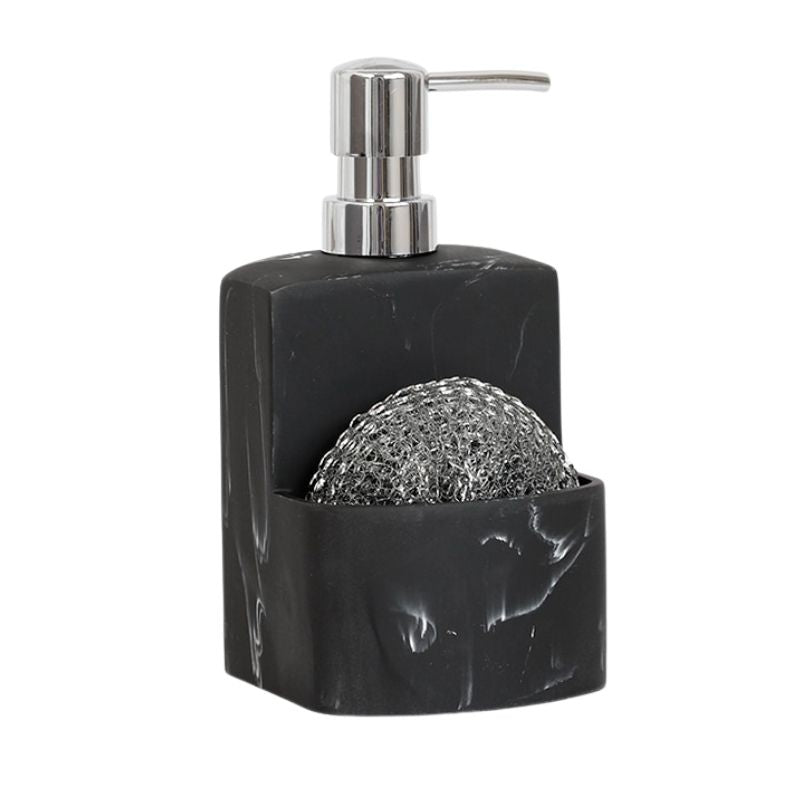 Maak je keuken compleet met de zeepdispenser met sponshouder marmerlook