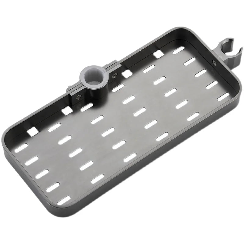 Dit doucherek is gemaakt van hoogwaardig aluminium, wat betekent dat het roestbestendig en duurzaam is. De donkere, bijna antraciete kleur geeft je badkamer een luxe uitstraling en past perfect bij de moderne inrichting. De installatie is een fluitje van een cent: je klemt het eenvoudig aan je bestaande douchestang. Geen boren, geen gedoe, en je kunt het zelfs gemakkelijk verplaatsen als je dat wilt. Met handige afwateringsgleuven blijft er geen water in het rek staan, wat schimmelvorming voorkomt en je spullen droog houdt. Bovendien zijn er twee handige haakjes aan de onderkant, ideaal voor het ophangen van je douchepuff, washandje of scheermes.